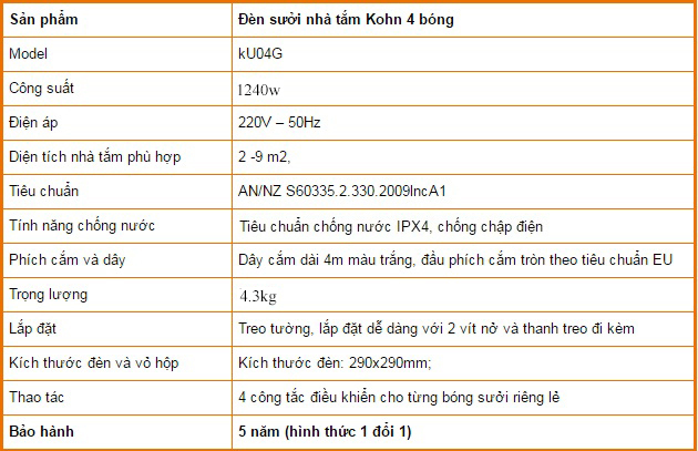 THÔNG SỐ CỦA ĐÈN SƯỞI BRAUN PLUS 4 BÓNG