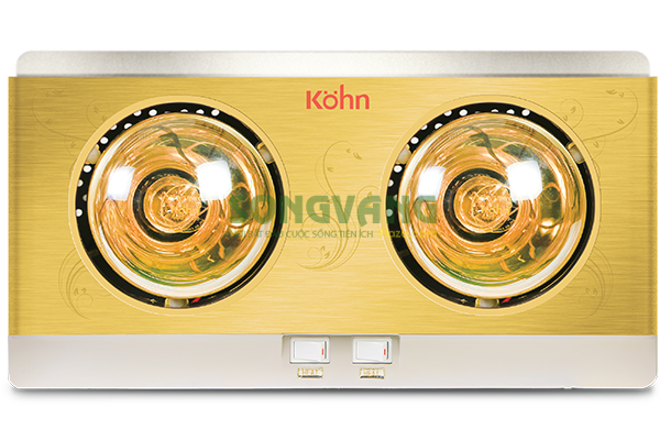 - Đèn sưởi nhà tắm tia hồng ngoại không đốt cháy oxy thích hợp với trẻ em, người già trong những ngày mùa đông không có ánh sáng mặt trời. Nhiều năm xuất hiện trên thị trường Việt, đèn sưởi kohn 2 bóng vàng plus đã được rất nhiều gia đình tin dùng và tìm mua với bóng hồng ngoại giảm chói lóa và thiết kế màu vàng sang trọng nhỏ gọn dễ sử dụng thích hợp treo lên phòng tắm hay phòng khách của nhà bạn.